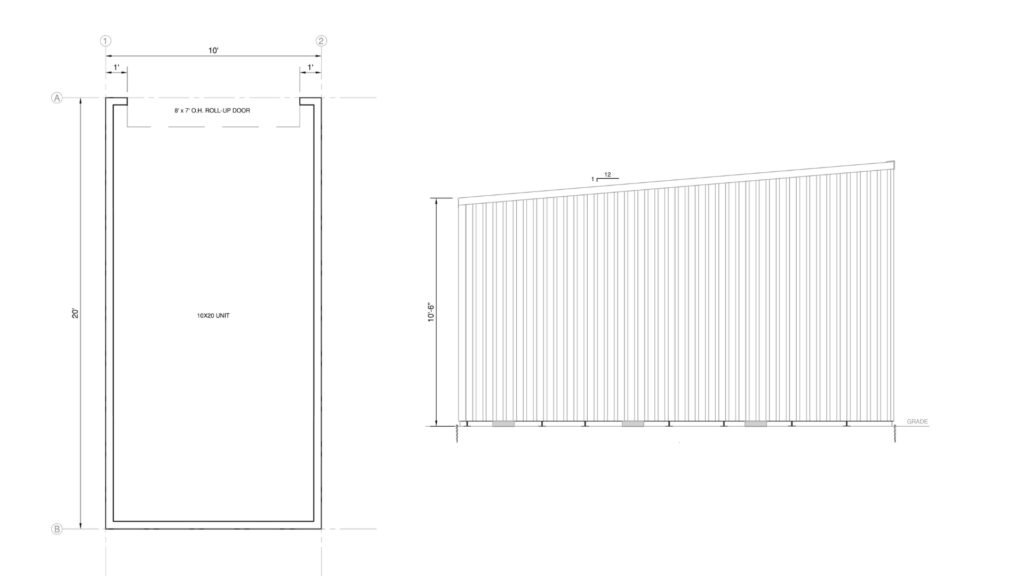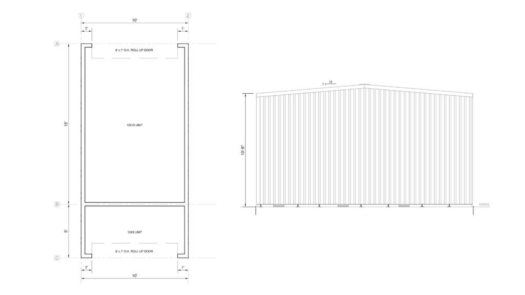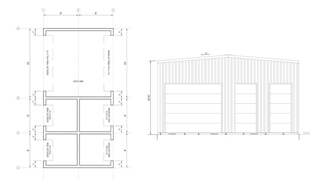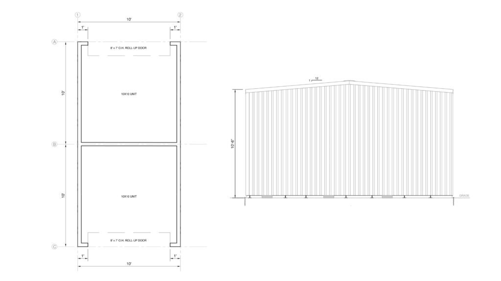 10×20 double pitch with 2-5×10 and 4- 5×5 with doors on the gable end